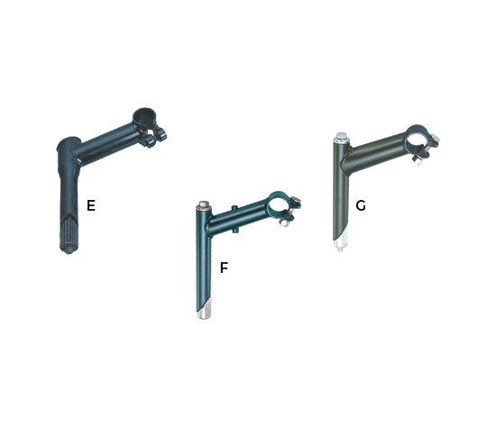 | (E) MTB Zoom Model: MTB Black with Reduced stem (F) MTB Model: Black with Upward Extension with cable guide (G) MTB Model: Black with Upward Extension |