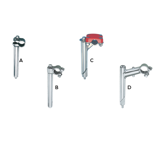 | (A) SLR Y-Model: Finish & size to order (B) SLR Model: size to order (C) BMX Model: Aluminum top Colour to order (D) MTB Model: Upward xtension with cable guide |